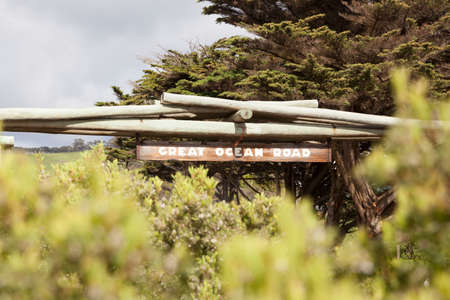 Wooden gate and street sign of the Great Ocean Road, Victoria, Australia