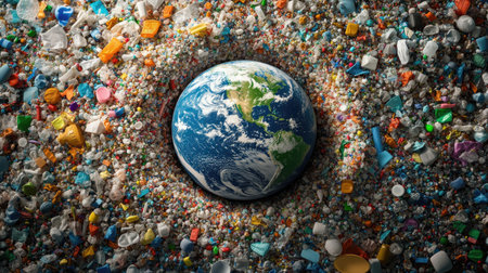 This striking image depicts Earth encircled by various types of plastic waste, highlighting the urgent environmental issues that challenge global populations.