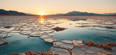Sunset on the Salt Flats in Death Valley National Park, California, Great Salt Lake Utah amazing travel picture, AI Generated