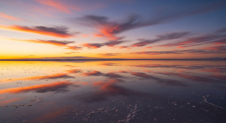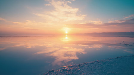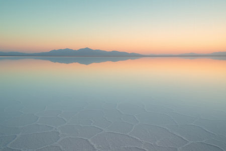 Pastel Sunrise Over Mirrorlike Salt Flat Landscape