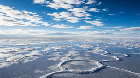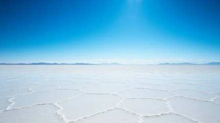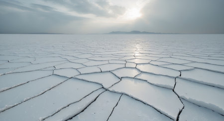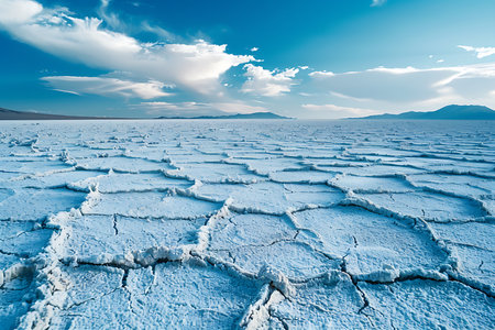 AI Generated. Cracked salt flats reveal a stunning white and crystalline landscape in a desolate setting