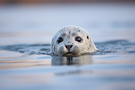 Seal coming out of the water in calm sea, head above surface, wildlife photography, portrait,