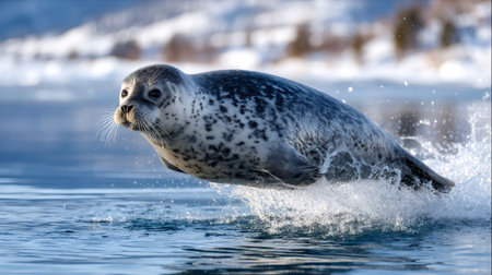 Captivating sight. Graceful pusa seal gliding through the vast expanse of the arctic ocean