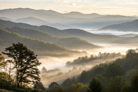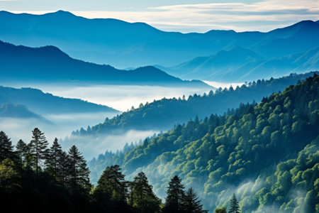 Early morning fog and cloud mountain valley landscape. Great Smoky Mountain National Park, Tennessee, USA