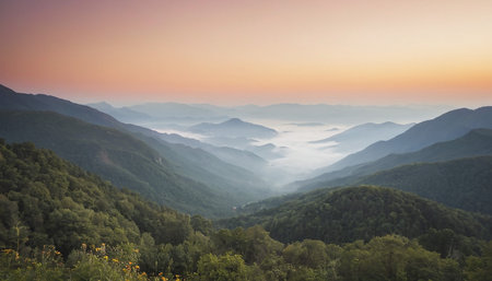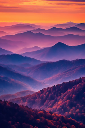 Majestic Hues: A Breathtaking View of the Great Smoky Mountains at Twilight