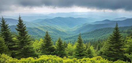 Wide-framed Wilderness. Great Smoky Mountains National Park. View from Clingmans Dome. Natural beauty background with picturesque copy space.
