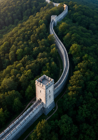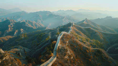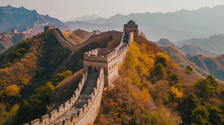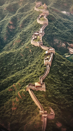 Generative AI : Aerial view of the Great Wall of China during sunny day