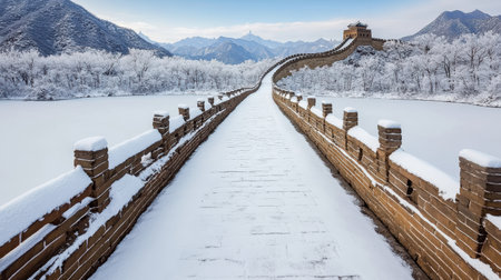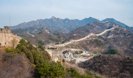 The view of the Great Wall of China in winter. Historical place in Beijing, China.