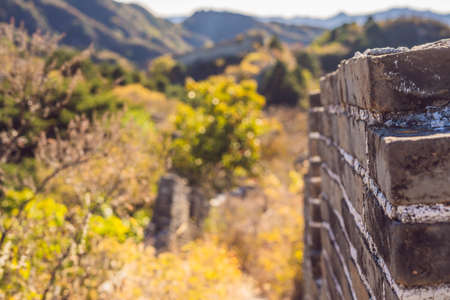 Detail of Great Wall in Beijing, China. The Great Wall is one of the most famous tourist attractions in Beijing.