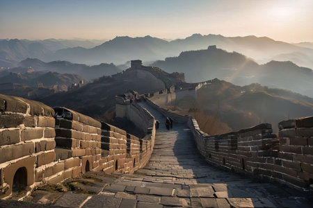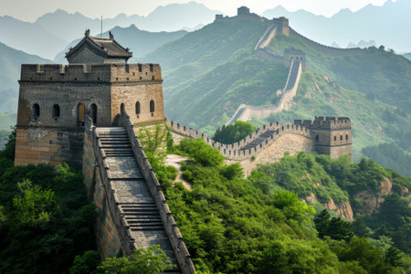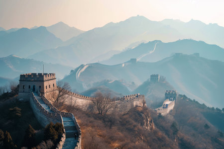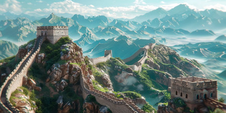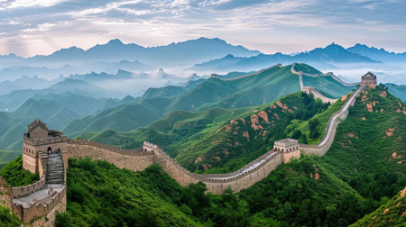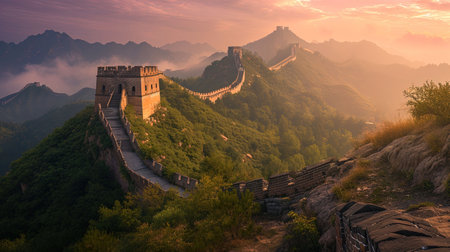 Experience the captivating beauty of the Great Wall nestled in misty mountains. This stunning landscape captures history, nature, and tranquility in one frame.