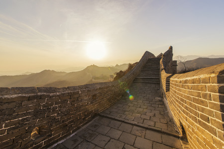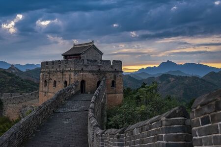 Great Wall of China at the jinshanling section,sunset natural landscape