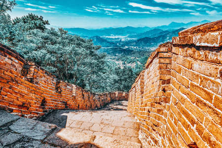 Fantastic view of impressive great wall on a beautiful sunny day, located at Juyong tourist site.