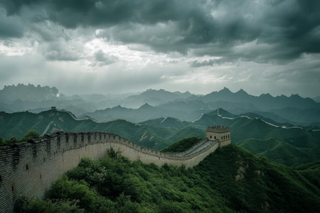 Dramatic views of the great wall of china amidst stormy skies a must visit travel destination