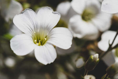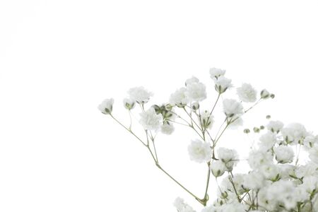 Gypsophila compact white. Close up beautiful flowers isolated on white studio background. Design elements for cutting. Blooming, spring, summertime, tender leaves and petals. Copyspace.