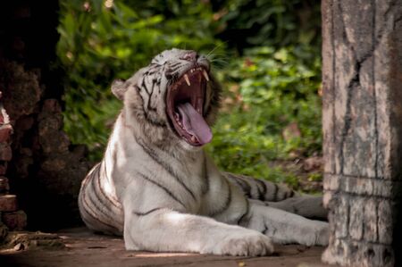 AI Generated. Majestic white lion looking upwards with a hopeful expression on its face