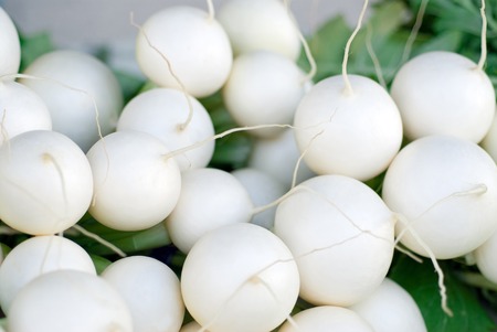 Black Spanish Radish on white, top view. Black Radish top view cut in half.