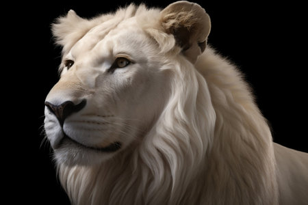 White Lion Portrait Isolated on Black Background, Clipping Path