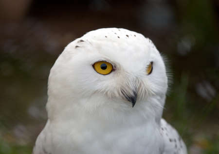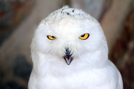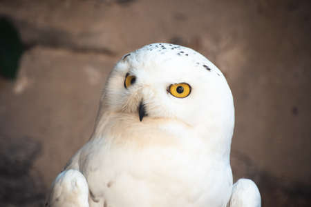 Close up portrait of the Snowy owl (Bubo scandiacus), native to Arctic regions in North America and Eurasia.