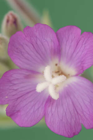 Epilobium hirsutum great hairy willowherb hairy plant with beautiful pink flowers with large white pistil on a homogeneous deep green background flash lighting