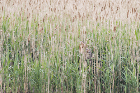 The Eurasian bittern (Botaurus stellaris) in the reed bed