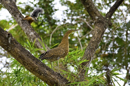 A Sunbittern in flight across a waterway in Pantanal Brazil