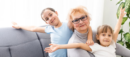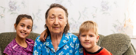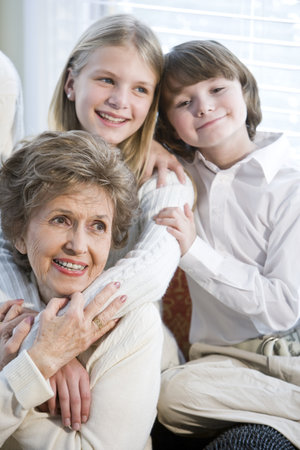 Close up portrait of children with grandmother together