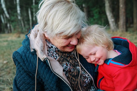 happy grandmother and granddaughter in nature