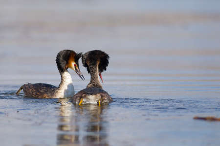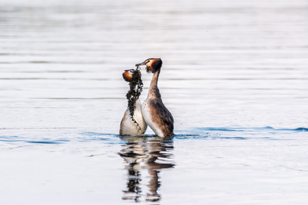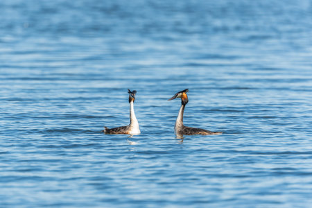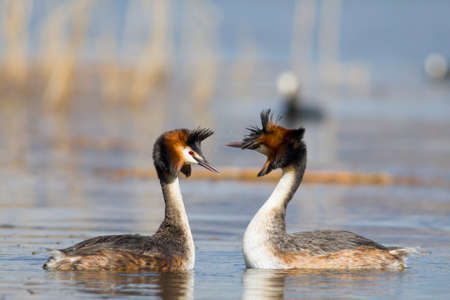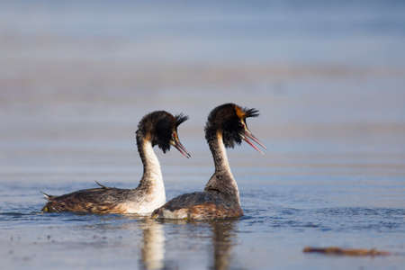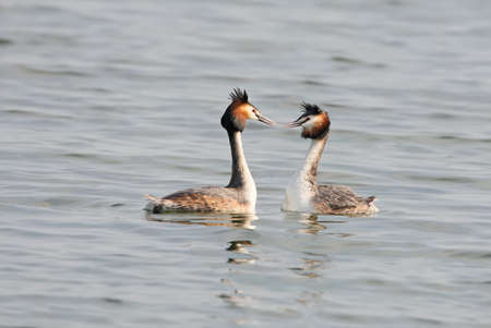 A pair great grebe during breeding ritual.