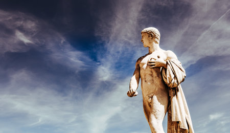 ancient greek statue against cloudy sky
