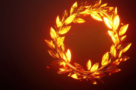 A glowing golden laurel wreath symbolizing success, winner, and victory, set against dark background with fiery sparks for dramatic effect