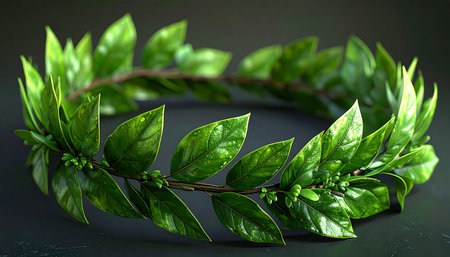 A 3D rendering of a classic laurel wreath. symbolizing victory. achievement. and honor. Perfect for awards. celebrations. and historical designs.