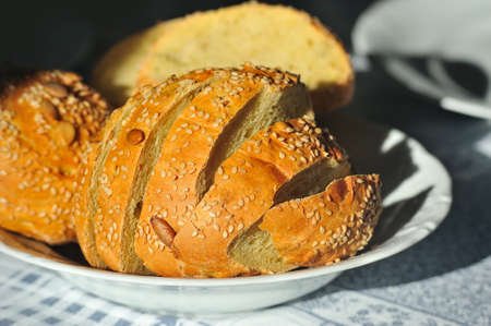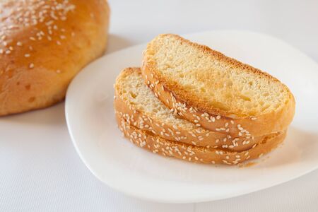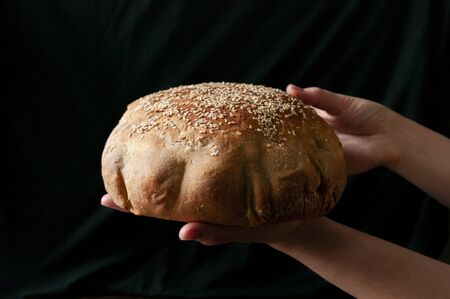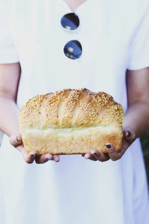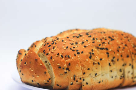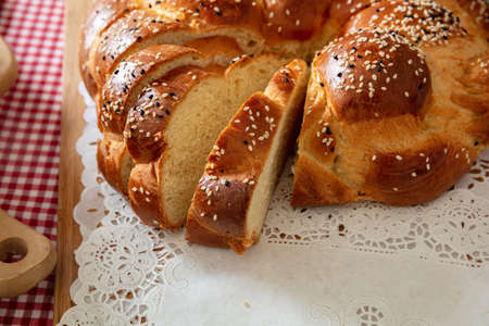 Homemade challah bread with sesame seeds. Jewish traditional bread for Shabbat