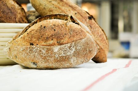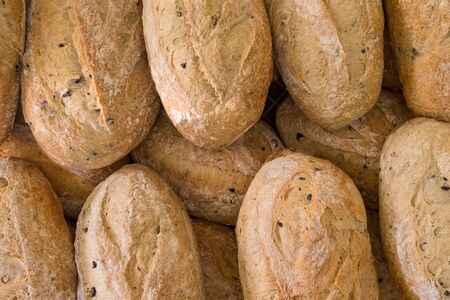 Fresh tasty fragrant handmade bread close-up. Homemade baking.