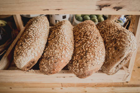 Fresh homemade bread from whole grain flour with the oatmeal flakes