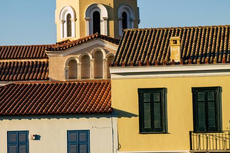 Athens Greece September 4, 2019 View of colorful window on a facade of a building in the Plaka neighborhood in the late afternoon