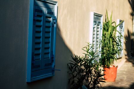 Athens Greece September 12, 2019 Closeup of a window on a facade of a house in the Plaka neighborhood in the afternoon