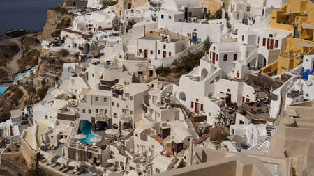 Traditional white houses in Oia village on Santorini island.