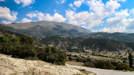 Greek Republic. Way and mountains, grass and trees. 13. Sep. 2019