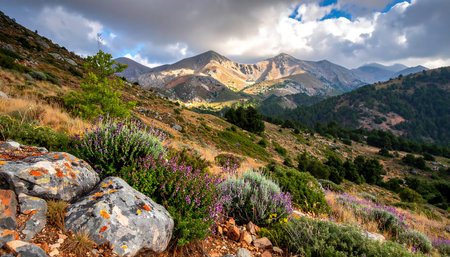 beautiful summer holiday green landscape with mountainous turkey on a warm sunny day