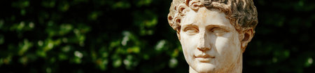 Capture the essence of classical art with this close-up of a marble bust featuring detailed hair and a graduation cap. Perfect for themes of education and culture.