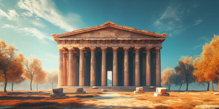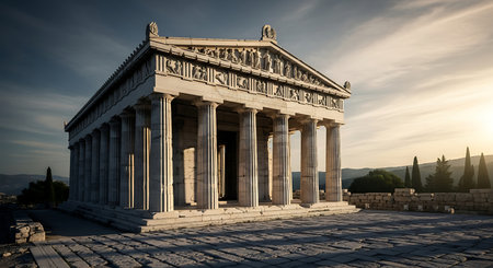 Captivating Image Of Historic Greek Temple Dedicated To Hephaestus, With Ample Room For Text. Concept Architectural Splendor, Ancient Greek Temple, Historic Landmark, Hephaestus' Sanctuary.