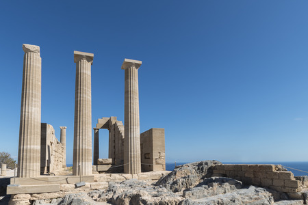 Acropolis of Lindos. Doric columns of the ancient Temple of Athena Lindia the IV,