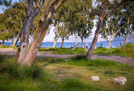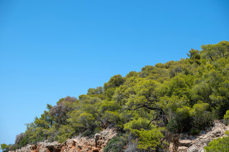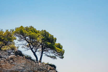 trees on the coast of the mediterranean sea a sunny blue summer day