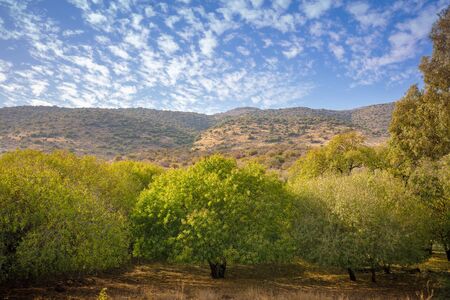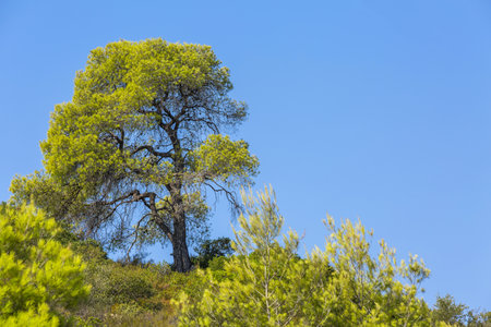 Old trees in the mediterranean South Europe region. Beautiful nature to relax during a summer holiday.