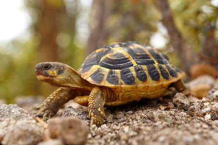 Hermann's tortoise in mountains, endangered species of Albania