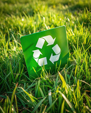 Green Recycling Symbol on Fresh Grass