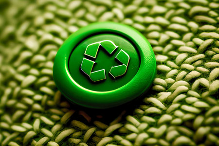 Close up green recycle symbol button. Generative AI, Generative, AI.
