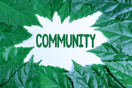 Text sign showing Community. Conceptual photo group of showing living in one place having a characteristic in common Nature Conservation Ideas, New Environmental Preservation Plans