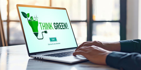 A smartphone shows a vibrant green recycling symbol formed by leaves, promoting sustainability in modern technology practices.