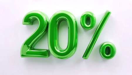 20 Percent Off Sale. 20% percent of. Special offer discount. green number 20% 3d rendering. sign for marketing, sales, discounts, promotions, financial, business, banner. 3d green number. number design